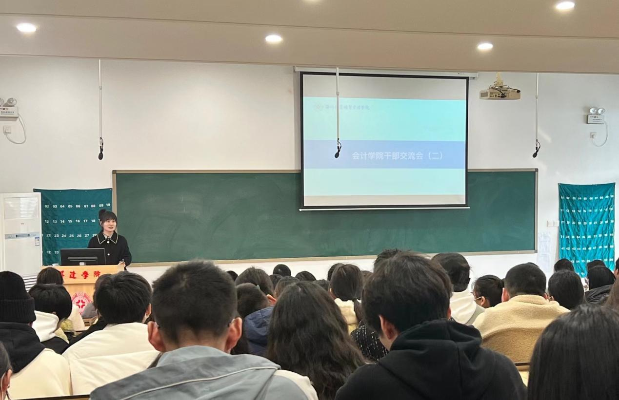 为进一步推进班级学风建设,充分发挥班级组织在营造和谐校园文化、培育优良学风、促进学生成长成才等方面的作用,会计学院开展了第二次学生干部交流会。会计学院辅导员杨煜、刘瑞雯、姜早阳及2021、2022级部分班干部参加了此次交流会议。