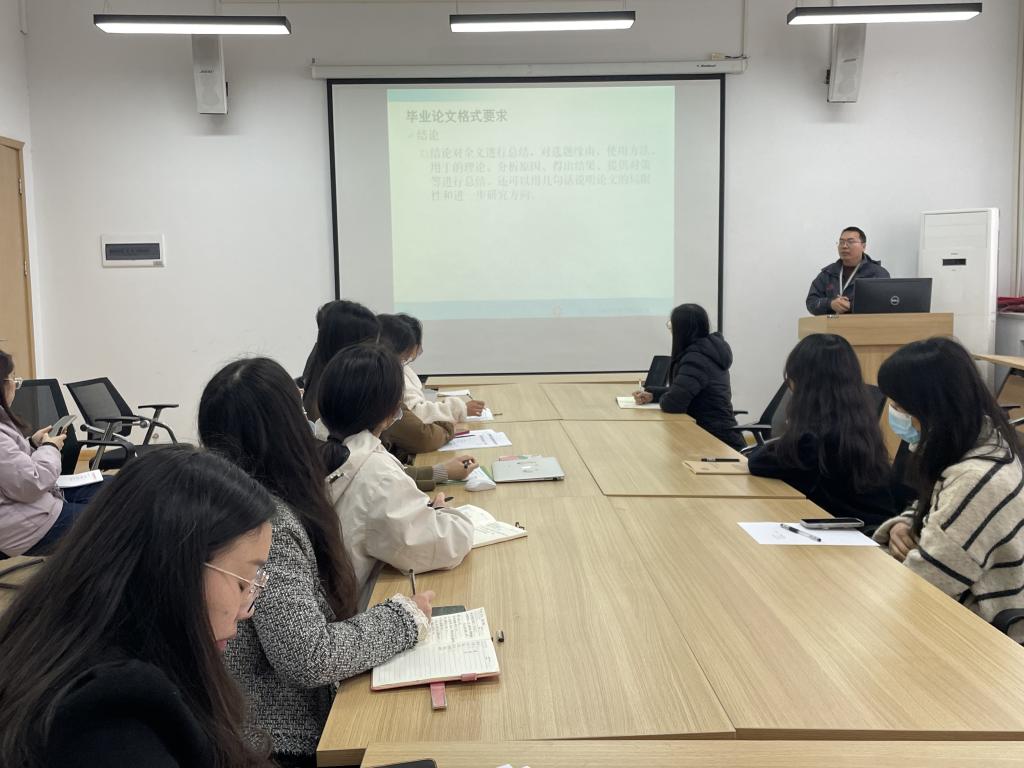 在会议中,白院长首先强调毕业论文结构严谨、完整的重要性,指出教师在指导学生毕业论文时,要重点把关摘要、正文等部分内容的质量,指导教师应当认真学习2023届毕业论文指导手册的相关内容,并运用在实际指导过程中。其次,各位教师代表就毕业论文指导过程中存在的问题展开讨论,旨在帮助教师提高指导学生论文写作水平,提升学生毕业论文质量。