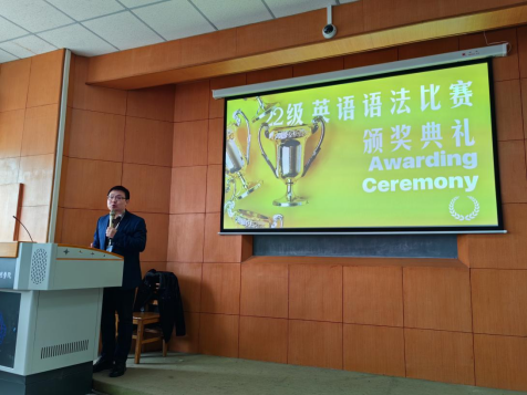 仪式第一项,由贺光辉老师简要介绍语法水平竞赛相关情况。随后张慧丽、张培丽、路洁、陈龙、樊丽贞、张庆凯、崔沙沙等老师分别为获得一、二、三等奖的同学颁奖。最后基础部主任王莉莉教授对本次活动进行了点评。