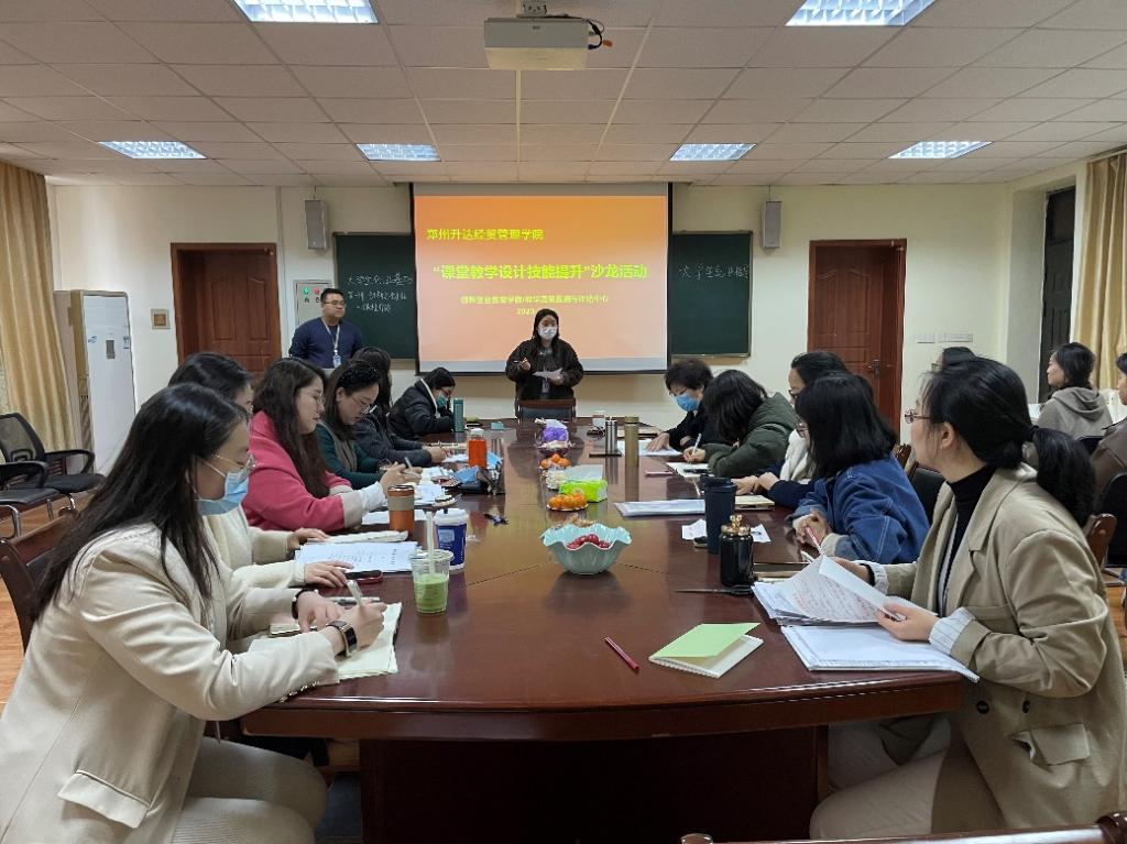 2023年3月23日,双创学院在商管楼115会议室组织开展了“课堂教学设计技能提升”沙龙活动。本次活动特邀校教学质量监测与评估中心左敬亮教授莅院指导,双创学院全体教师及部分学生参加了活动。沙龙活动由学院办公室主任、教学秘书胡素桂主持。