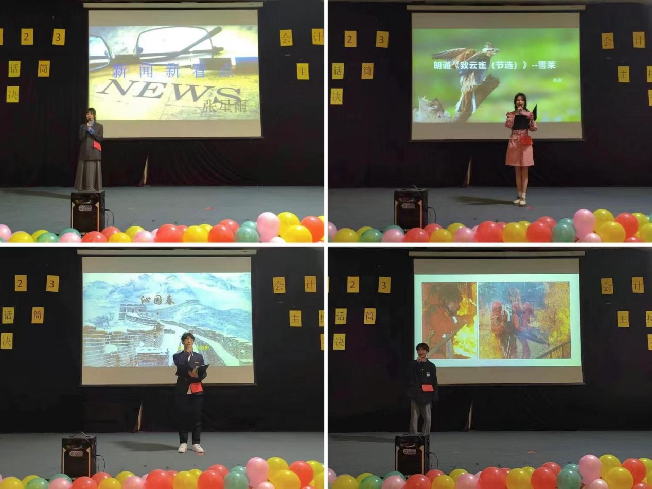 本次大赛分为自我介绍、模拟主持和才艺展示三个环节。第一环节,选手们通过自己独特的形式进行自我介绍,大赛由此拉开帷幕;第二环节,各个选手依次上台模拟主持,通过鲜活的事例讲解,展现了各自的主持风格和主持能力,将比赛推向了高潮;第三环节,选手们各展所长,声情并茂的朗诵,美不胜收的舞蹈及嘹亮动听的歌声,精彩的表演引得观众掌声不断;最后,由会计学院第六届主持队队长李悦萌做队史介绍并对选手们的主持及表演表示极高的赞扬,希望各位选手们能再接再励,在今后的道路上能够继续发光发彩。
