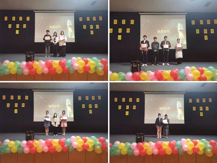 最后就是激动人心的颁奖环节。由第六届主持队队长李悦萌为优秀奖获得者王靖怡、贾彪颁发获奖证书并合影留念;由社联副理事长高家辉为三等奖获得者周晓梦、姜均衡、田浩然颁发获奖证书并合影留念;由学生会副主席孙璇为二等奖获得者韩宜、叶佳瑶颁发获奖证书并合影留念;由团委书记助理李金妮为一等奖获得者张星雨颁发获奖证书并合影留念;由学生会主席李文姗为道德风尚奖获得班级22级审计一班、精神文明奖获得班级22级会本四班、最佳组织奖获得班级22级会专五班颁发获奖证书并合影留念。