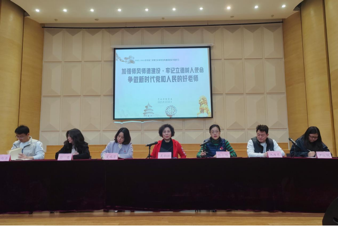 为深入贯彻二十届中央纪委二次全会精神、十一届省纪委三次全会精神,将学院党委政治监督工作落到实处。艺术学院于2023年3月23日下午在艺术楼音乐厅召开以“加强师德师风建设、牢记立德树人使命,争做新时代党和人民的好老师”为题的党风廉政建设专题学习会。学院全体教职工参加会议,本次学习会由艺术学院党委书记张小雁同志领学。