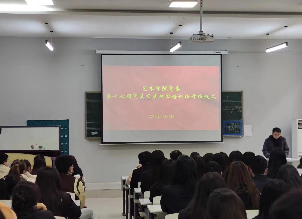 2023年3月23日下午,第十七期发展对象开班仪式及的党课第一讲在艺术楼104正式召开。此次出席人员包括艺术学院党委书记张小雁同志、院党委副书记夏瑞芳同志、院党委宣传委员尹红艳同志、院党统战委员贠雯同志、院党纪检委员杨萌玮同志、院党委组织委员刘世举同志以及各支部书记。参加人员有第16期预备党员、17期拟发展对象、第17期积极分子以及学生党建工作部全体成员。