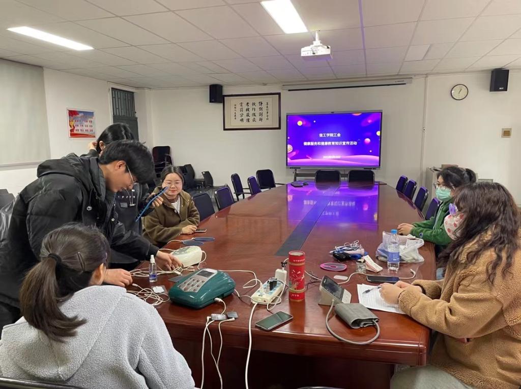 为缓解我院教职工身心压力,增强我院教职工了解健康知识,激发岗位热情,增强工作积极性,提高工作效率。我院邀请河南中医药大学健康青年志愿者于3月20日至3月24日在资讯大楼会议室开展了为期一周的工会健康服务活动,免费为教职工提供健康服务,并进行健康知识教育宣传。