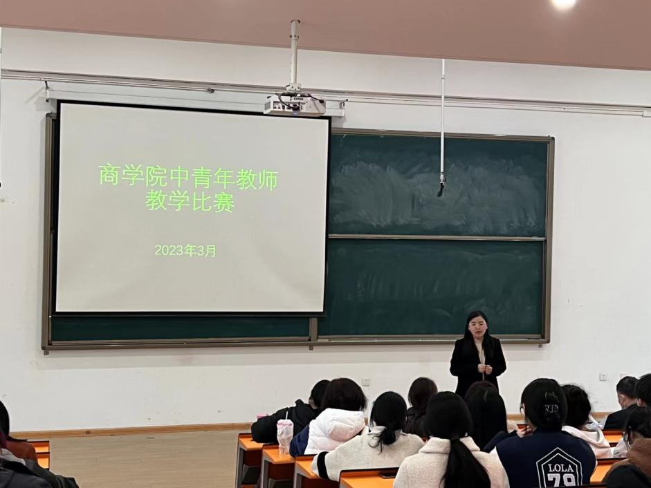 为提升我院教学质量,提高教师教学能力,我院于2023年3月23日下午14:00,教学2号楼116教室举办商学院2023年中青年教师教学比赛,参加本次比赛有:教学秘书马巧丽及全体教师,本次比赛由教学秘书马巧丽主持。