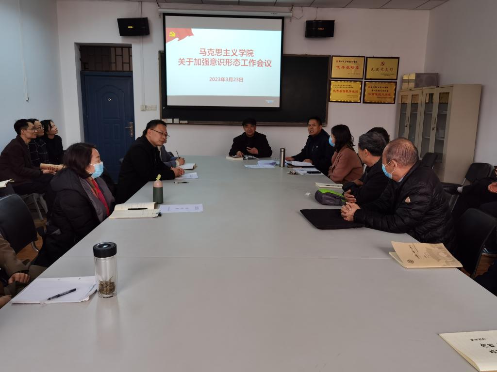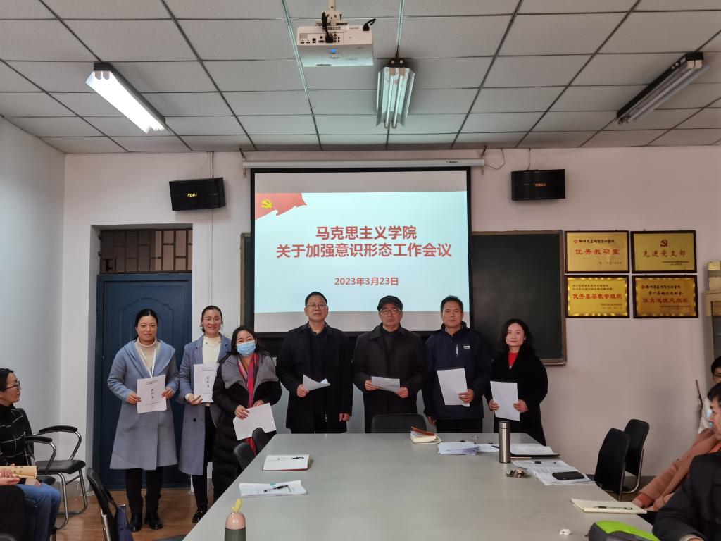 为全面贯彻落实中央、省委、省委高校工委以及校党委关于加强意识形态工作的决策部署,落实意识形态工作责任制,进一步明确意识形态工作责任和任务要求,3月23日下午,马克思主义学院在综合楼211会议室马克思主义学院召开关于加强意识形态工作会议。院长王宪政教授、党总支书记窦峰同志、各支部书记以及全体专任教师参加。全体专任教师签订了意识形态责任书。