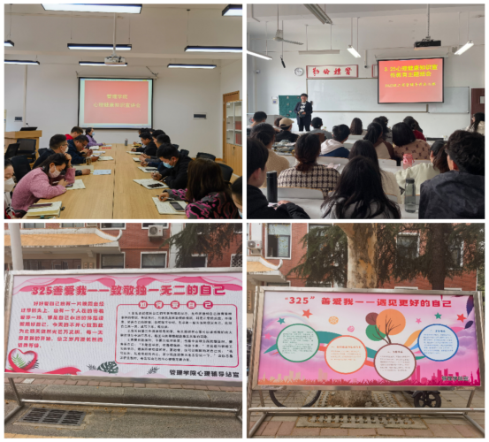 每年的3-5月份是心理危机的高发期,由于季节交替,天气多变,大家的情绪容易受到影响。3月25日取其谐音“善爱我”,我们每个人首先要学会关爱自己,善待自己,只有我们更多地去关注自身,关爱自己,让自己的身心更健康,我们才有能力去关爱身边的人。特此管理学院组织召开“3.25”心理知识宣传活动。