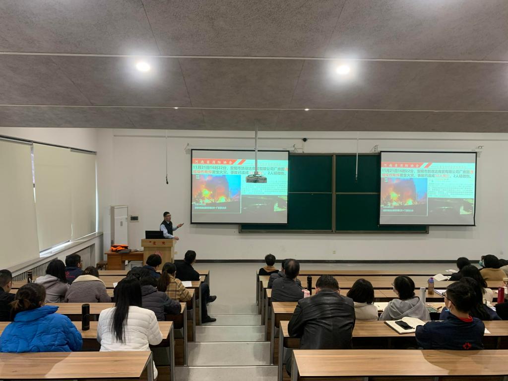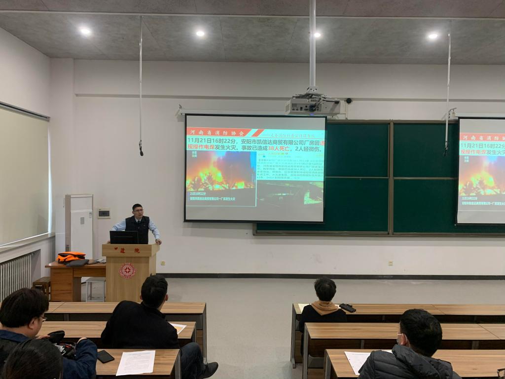 此次讲座特别邀请了省消防协会义务消防科普宣传服务队的彭冲教员为大家进行讲解,彭教员自从事消防宣讲工作以来,消防实践经验丰富,曾于省教育厅、省监狱管理局、郑州大学、郑州枫杨外国语学校、省实验幼儿园等单位进行过宣传,得到广泛好评。