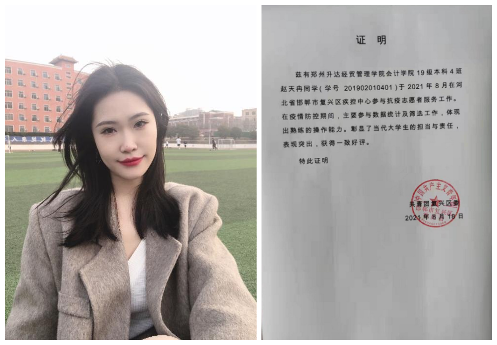 赵天冉,会计学院19级会计专业本科4班学生,女,中共党员,担任班级学艺股长。她始终坚持严谨的态度、刻苦的精神,认真对待学习,努力提高自己的学习能力和学习成绩,自入学以来学年专业考试成绩均列为全院第一名。在工作中,她态度端正、脚踏实地,努力带动班级的学习氛围,具有强烈的责任意识。对于同学们疑惑的问题,她都能尽自己所能,倾囊以助,和同学们和睦相处。在校期间,获国家级奖项7项、省级奖项2项、市级奖项1项、校级奖项11项。在学习之余,她坚持志愿服务工作,2021年8月1日,处于暑期的赵天冉同学,积极报名参加了疫情期间家乡属地疾控中心志愿服务;2019-2020学年暑假期间,她去到市级图书馆做起了图书馆管理收纳志愿者,用实际行动践行着自己的入党誓词。