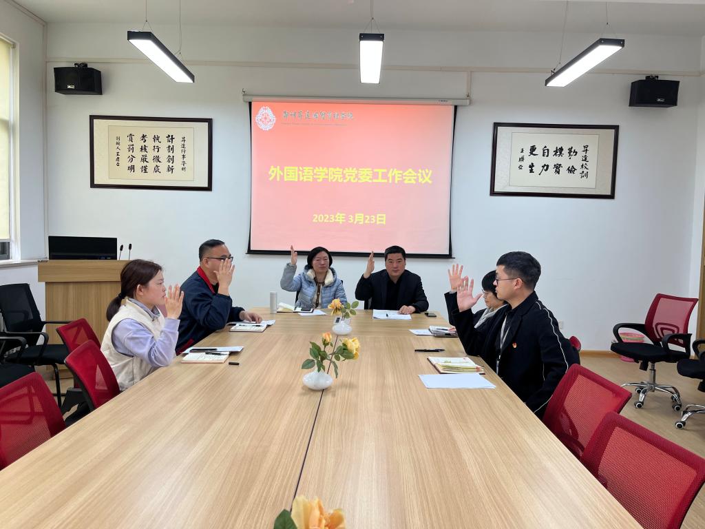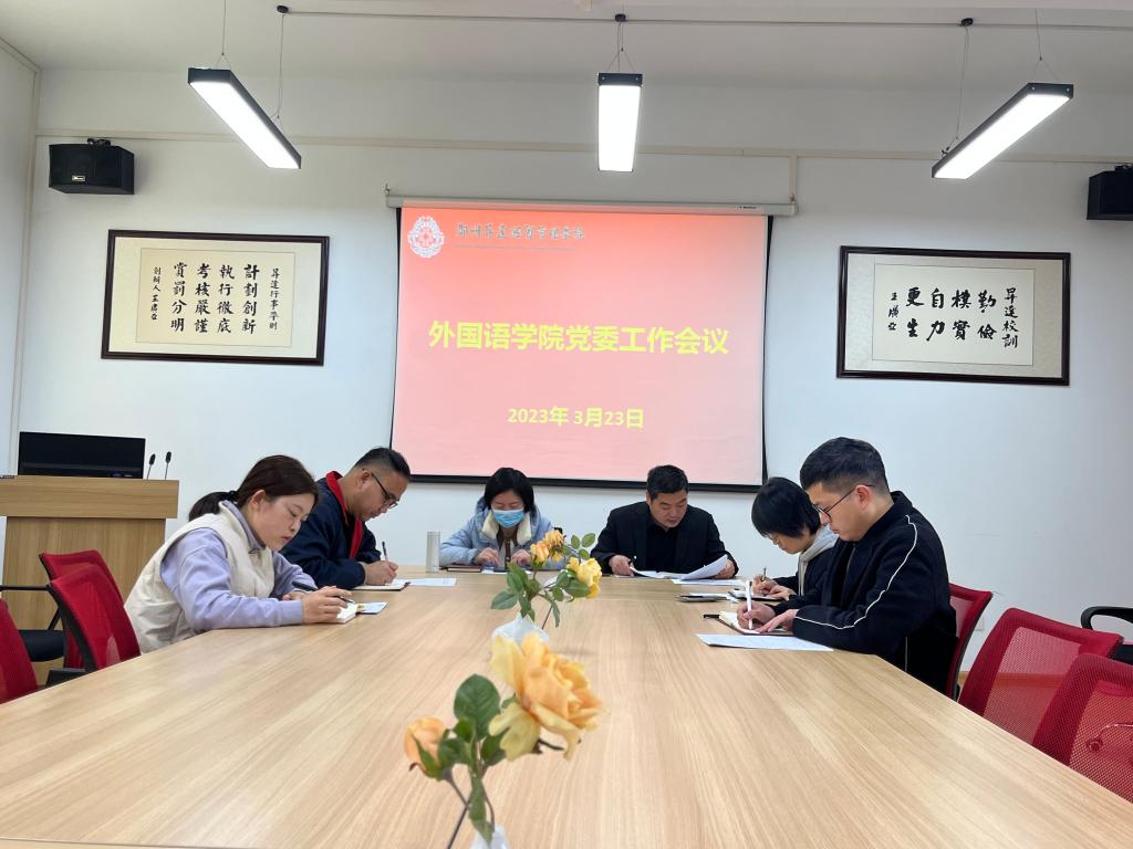 2023年3月23日,外国语学院党委在教一楼206会议室召开了党委工作会议。学院党委全体委员参加会议。学院党委书记石皓召通知主持会议。
