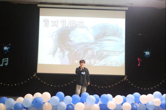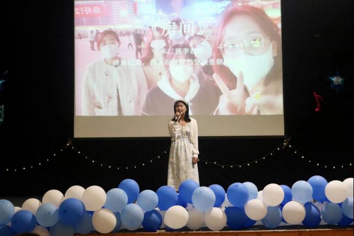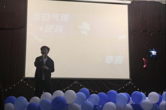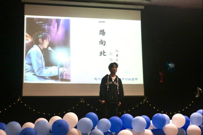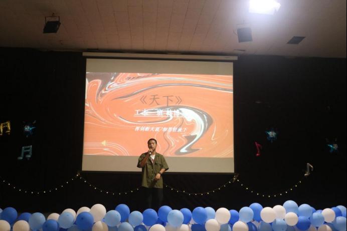所有选手演唱完毕后,20级毕涛学长为大家带来歌曲《告白气球+逆战》,点燃观众热情。