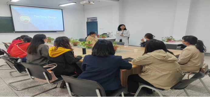 吴婷和张琳两位老师分别介绍了自己的教学设计。她们从学情分析、教学理念和教学目标等方面进行了5分钟左右的阐述。随后进行了模拟的示范课,参会教师充当听课学生与她们互动。经过多日的努力和多次的打磨,两位教师的展示内容丰富完整、语言准确流畅、逻辑清晰,既有知识的传授,又有提高学生思维能力的点睛设计。