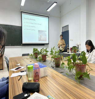 在自由发言和讨论环节,参会的同仁们与两位老师进行沟通和交流,与身边的同事进行讨论,从各个方面对两位老师的展示提出了很多的意见和建议。小到一些缩写词的规范性,图片排版的美观性,时间的把控,大到对课程设计的删改、教学活动的优化等。