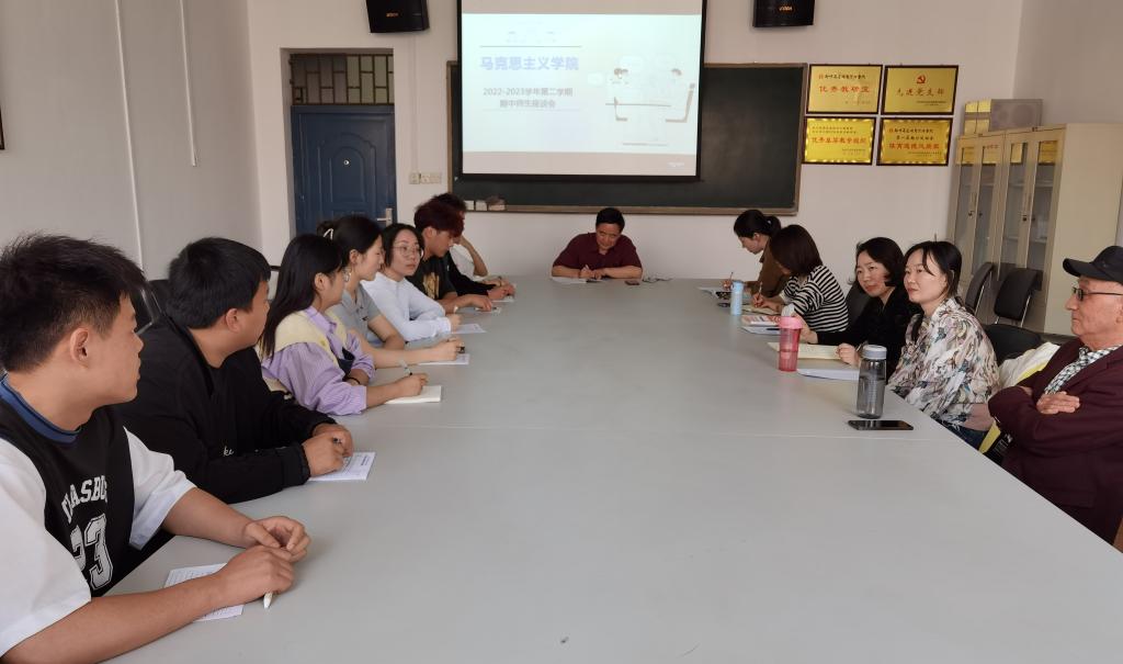 为更好地贯彻立德树人的根本目标,提高思政课教学水平,切实增强思政课的思想性、理论性、亲和力和实效性,认真查找思政课教学中的问题,进一步总结思政课教学经验,4月19日中午,在综合楼211会议室,马克思主义学院组织一场别开生面的师生座谈会。会议由马克思主义学院院长王宪政教授主持,教学秘书苗淑娟、各教研室主任以及各学院学生代表参加。