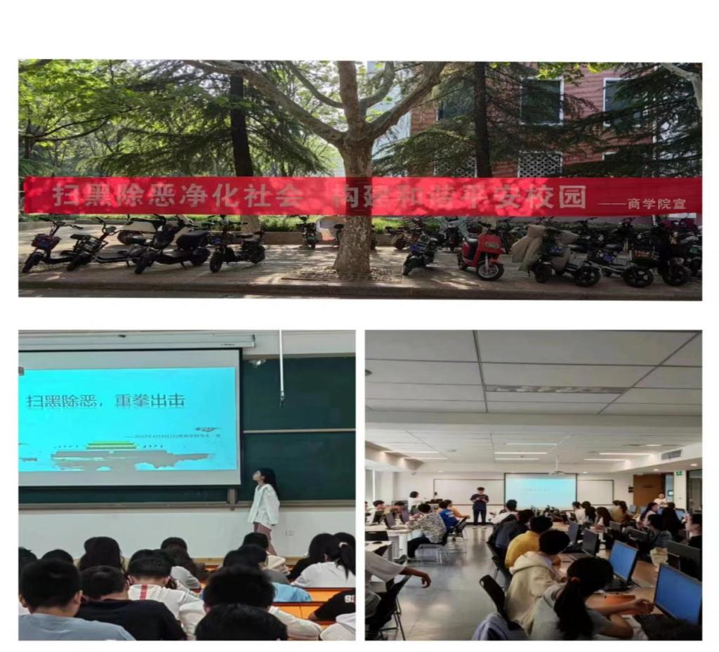 近日,商学院积极响应号召,通过开展各种形式活动学习贯彻落实扫黑除恶专项斗争工作会议精神。学院和各班级通过张挂标语横幅、宣传海报、召开主题班会等多种方式向同学们宣传了如何有效预防和应对校园欺凌、黑恶势力,如何识别身边黑恶势力、面对黑恶势力如何运用法律武器来进行自我保护;着重宣传与大学生紧密相关的校园贷以及通过淘宝刷单、中奖短信等新型网络电信诈骗,为大家普及了法律知识,进一步增强了学生的法治意识和防范能力。