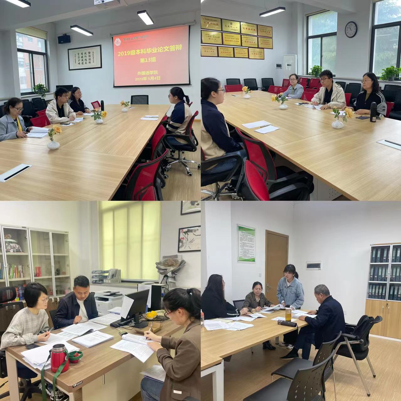外国语学院2023届本科生毕业论文答辩工作于4月25日-5月6日在教1号楼各办公室陆续开展。本届答辩毕业生共583人,分为18个答辩小组,共有56名答辩评委参与答辩工作。