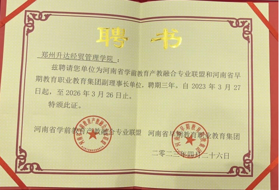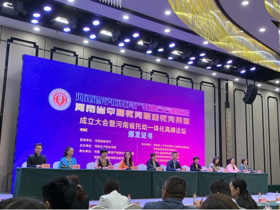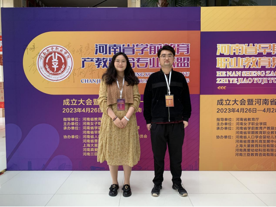 4月27日至28日,河南省学前教育产教融合专业联盟、河南省早期教育职业教育集团成立大会暨河南省托幼一体化高峰论坛在郑州中州国际饭店隆重举行,我校学前教育专业教研室闫振刚主任和马晓晶老师参会。