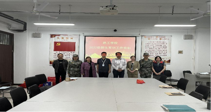为总结2022级新生军训工作,表彰军训工作中涌现出的优秀教官、优秀辅导员、优秀班集体和优秀学员,建工学院于5月9日下午召开了2022级新生军训工作表彰会。院长杨开云、党委书记韩炎涛、党委副书记兼副院长高燕、行政秘书赵杨、2022级班级辅导员、优秀教官和优秀学员代表参加了本次会议。会议由行政秘书赵杨主持。