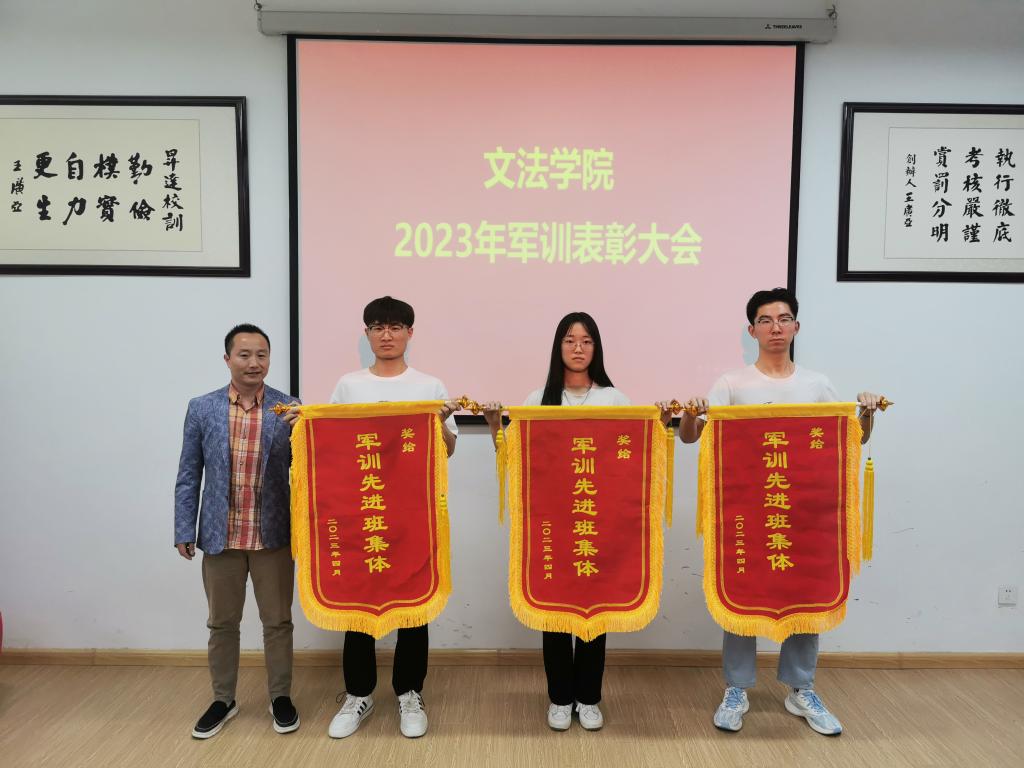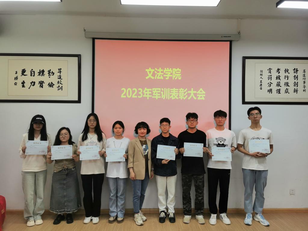 “古之立大事者,不惟有超世之才,亦必有坚忍不拔之志。”2023级学生们在经过为期三周的军训后以优异的表现为军训画上了一个圆满的句号。5月9日文法学院对此次军训中表现优秀的学生、班级、军训教官和辅导员老师进行表彰。文法学院党委书记刘晓川、副院长赵严俊、全体辅导员老师及获奖代表参加会议。表彰会由行政秘书郑玲玲主持。