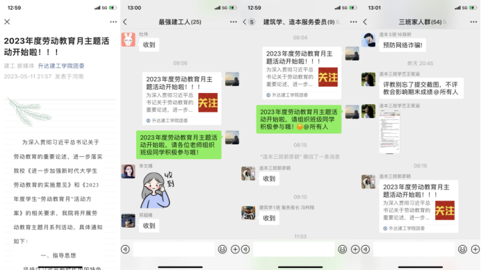 为深入贯彻习近平总书记关于劳动教育的重要论述,进一步落实我校《进一步加强新时代大学生劳动教育的实施意见》和《2023年度学生“劳动教育月”活动方案》的相关要求,建工学院自5月9日起组织师生开展劳动教育宣传活动。