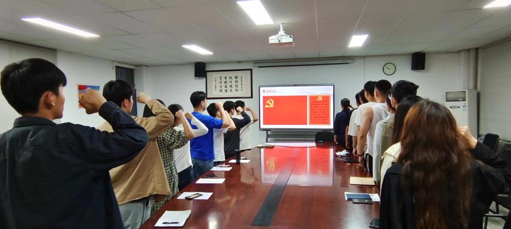 接着,由支部书记赵征带领全体党员,面向鲜红的党旗,庄严地向党旗宣誓。