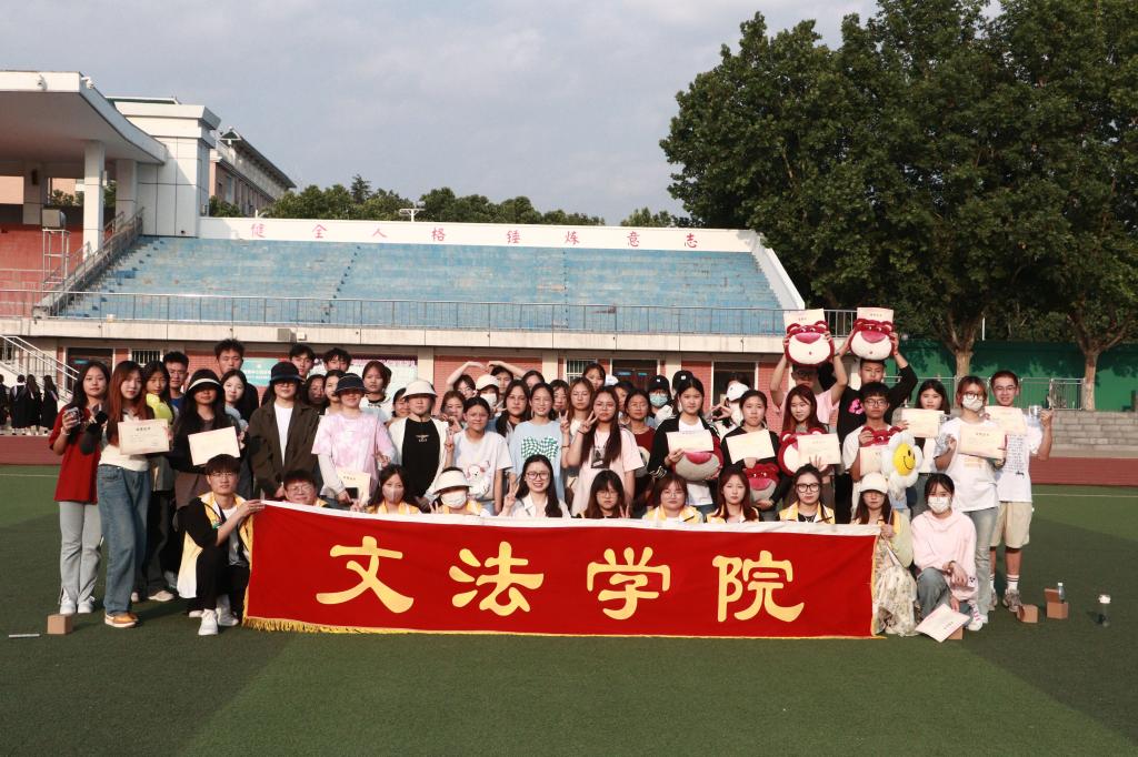 为提高大学生心理健康素养,增进同学感情,在“5·25大学生心理健康节”到来之际,5月24日下午,文法学院在学校田径场举办了“乐享运动心悦健康”朋辈趣味心理运动会。