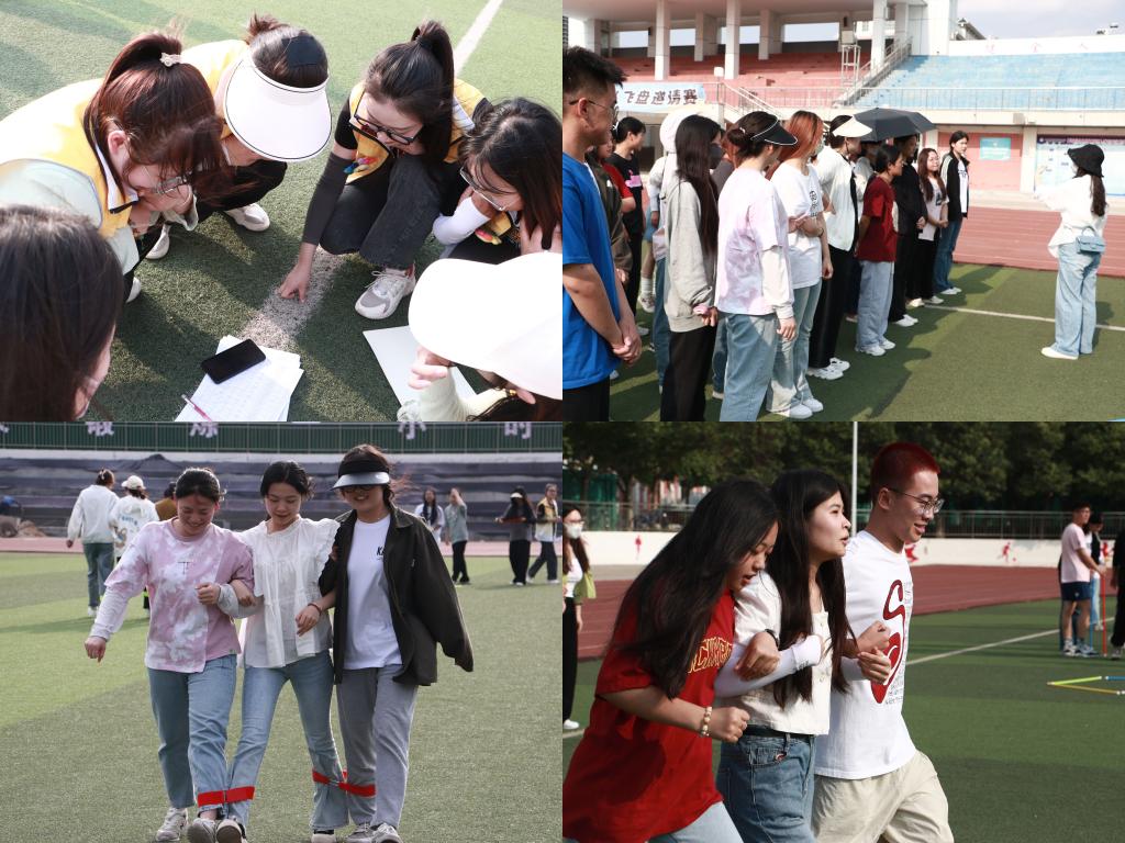 学院22级50位学生代表和各班级辅导员老师参加,趣味心理运动会设五项团体游戏,分别为环环相扣、珠行万里、搭桥过河、三人四足和不倒森林,形式多样、兼顾运动性与趣味性。