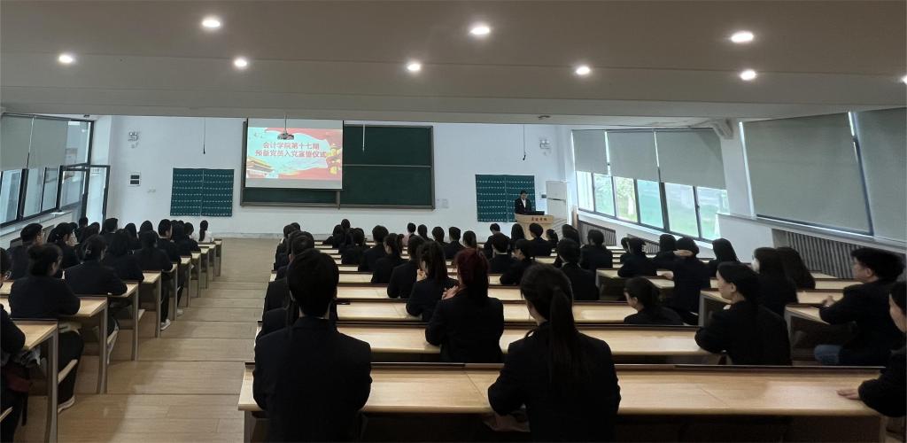 为加强对新党员教育,激励新党员坚定理想信念,永葆赤子之心,不懈奋斗努力,5月26日,会计学院党委在教4-118举行会计学院第十七预备党员宣誓仪式,学院党委书记张蕾、会计学专业本科第一党支部书记刘爽、会计学专业本科第二党支部书记刘叶青,以及76名新发展预备党员参加宣誓仪式。宣誓仪式由学院党委组织员曹会美同志主持。