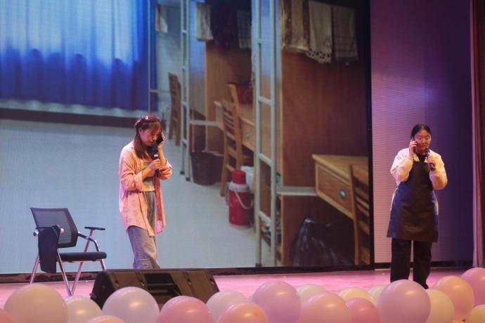 在晚会上半场,《抉择》、《忙与茫》这两个情景剧依次出演,演员们用他们精湛的演技,完美的表演,牵动着场下每一位观众的心。并提醒我们当代大学生正值青春年少,一定要擦亮我们的双眼,坚守内心,拒绝校园贷,从我做起!
