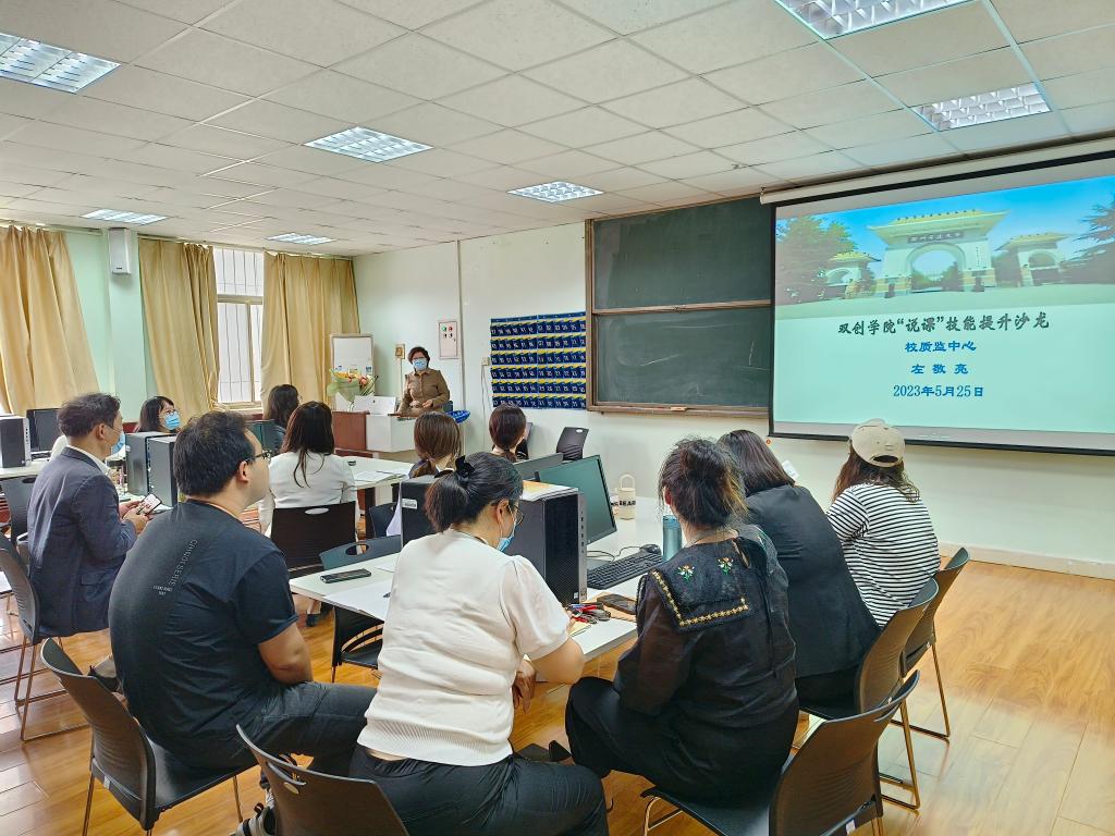 2023年5月25日,双创学院在商管楼115会议室组织开展“课堂教学能力提升”沙龙活动。本次活动是继今年3月份开展同类型活动之后,再次邀请教学质量监测与评估中心左敬亮教授莅院指导。双创学院院长王铮、教研室主任张宁及全院教师参加了活动。活动由院办公室主任、教学秘书胡素桂主持。