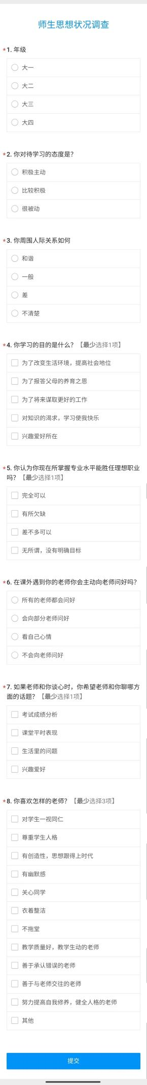 为了进一步了解金融贸易学院师生的心理、思想状况以及学生的学习生活,同时也为增加同学之间、师生之间的交流,更好的引导学生树立正确的人生观、价值观,加强学风建设。学院于4月20日对本院师生代表开展了思想状况调查。