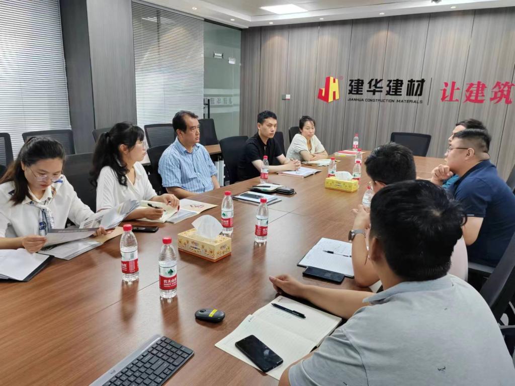 首先,在郭海峰总工介绍与讲解下,杨院长一行了解了建华建材集团的发展历史以及企业文化。建华建材集团创建于1993年,截止到2019年6月,在国内17个省2个直辖市和1个自治区成立并投产了48处生产基地。产销量在中国市场占有率达30%以上,拥有规划、勘察、设计、施工、工程管理、检测、造价、材料等各类专业技术人才。随后杨院长结合学校发展战略规划,向企业介绍了学校的相关情况,并详细阐述了建筑工程学院的学科建设、师资力量、人才培养、科研项目情况及相关优势。建华建材集团人力资源部门经理邢卫波介绍了建华建材集团人才培养模式、企业科研创新成果。双方就建筑材料模块对人才能力需求情况、实习就业情况、毕业设计情况、新专业建设、科研合作等情况进行了充分的沟通和交流,特别是对新专业建设的探讨,专业建设如何更好的契合社会的发展需求展开了深度交流,就下一步产教深度融合、项目共建、课题申报、教材编写、智能建造技术应用、低碳建材等行业前沿技术等进行了深入探讨,达成初步合作意向。