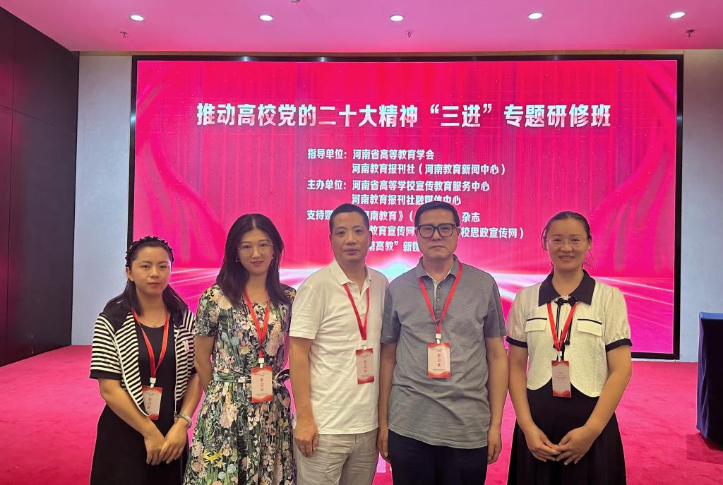 为深入学习宣传贯彻党的二十大精神,切实推进党的二十大精神进教材(案)、进课堂、进学生头脑,将党的理论创新成果全面贯穿、有机融入各门课程,着力打造一直信仰坚定、理论功底扎实、数量充足、结构优化的高素质教师队伍,实现课程思政与思政课程同向同行、日常思政工作与思政课程同频共振,河南省高等学校宣传教育服务中心于7月22—26日在宁夏银川举办了推动党的二十大精神“三进”专题研修班。我校马克思主义学院特组织何涛、崔延明、李瑛、王雯慧、代晓雅五位老师参加了本次研修班。