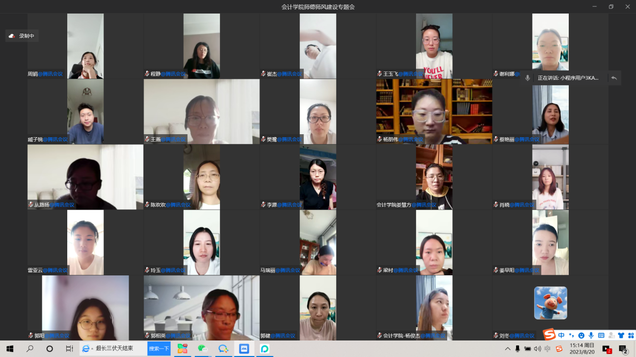 为进一步加强师德师风建设,2023年8月20日下午,会计学院召开师德师风建设专题会,院党委书记张蕾,院长张景空,院党委副书记兼副院长张新成、副院长毕鹏翾、行政秘书陈刚,教学秘书李永利以及全体教职工参加本次会议。
