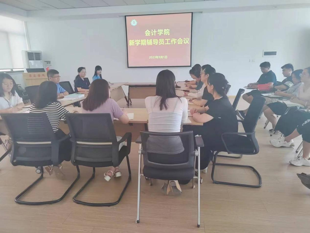 9月1日上午10:30,会计学院在教学四号楼209会议室召开本学期第一次辅导员工作会议。参加会议的有会计学院党委书记张蕾、行政秘书兼团委书记陈刚以及全体辅导员。