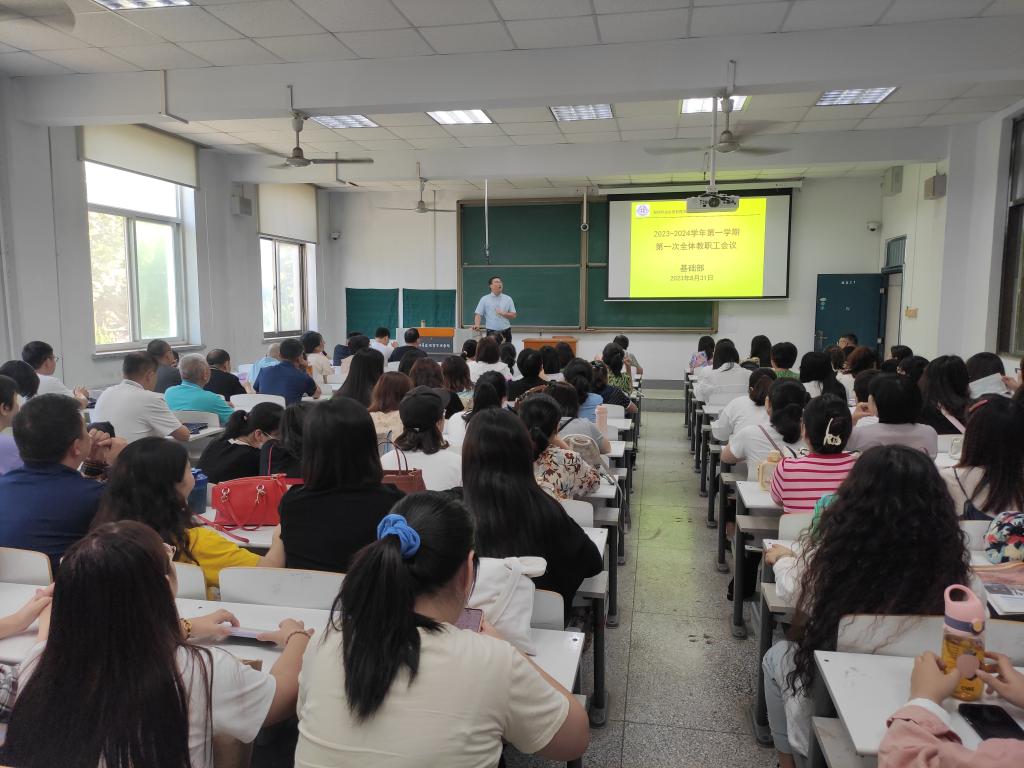 8月31日上午,为切实做好2023-2024学年第一学期教学工作,基础部在综合楼221召开全体教师教学工作会议,会议由基础部党总支书记张志银同志主持,基础部主任王莉莉教授、副主任焦争鸣教授,教学秘书以及基础部全体教师参加了会议。