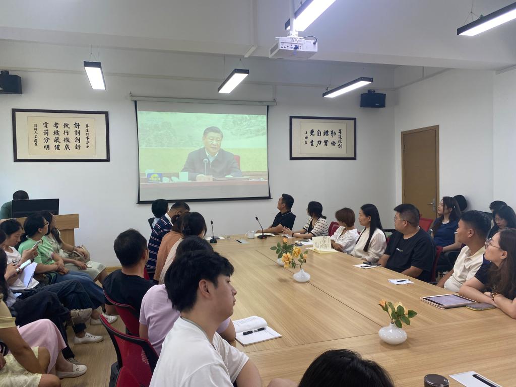 2023年8月31日上午,外国语学院在教一楼206会议室召开学院教职工大会,开展政治理论学习,传达学习习近平总书记在中央政治局第五次集体学习时的重要讲话精神。学院党委书记石皓召主持会议,全体教职工参加学习。