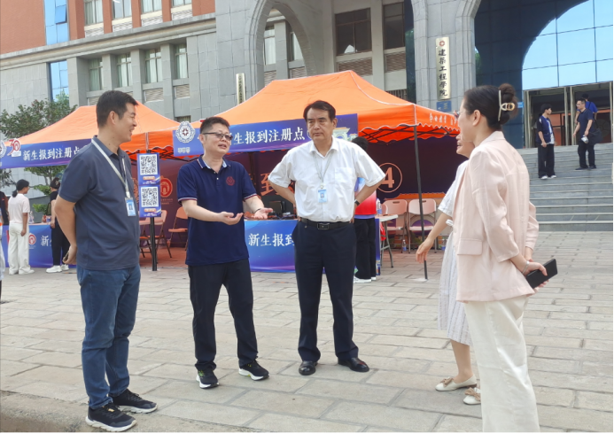迎新现场人流如织却又秩序井然,一幅幅迎新喷绘、条幅营造出热情洋溢的氛围,一名名志愿者热情主动、耐心周到地为新生提供咨询、搬运行李。准备报到的新生排队在人脸识别系统前拍照报到,报到过的新生陪着家长徜徉在清新如画、金桂飘香的秋日校园。副校长张其武9月4日一大早就来到建工学院,指导慰问学院迎新工作;院长杨开云动员谋划、统筹协调迎新工作;院党委书记韩炎涛、副院长高燕、教学秘书齐雷、行政秘书支园园和各教研室主任、教师、辅导员时刻忙碌在迎新现场,深入学生宿舍看望慰问新生和家长;党员志愿者、团学干部积极主动热情服务;新生和家长被洁净的校园、温馨的服务、热情的师生感动的赞誉连连……