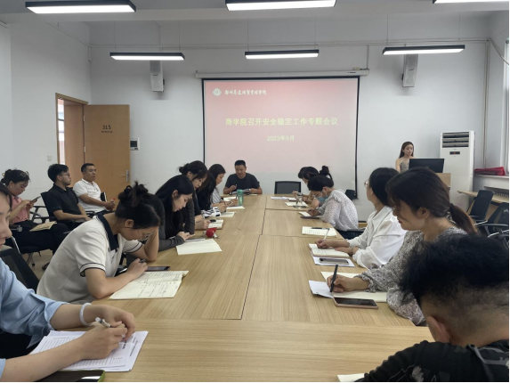 为进一步加强安全防范工作,预防校园各类安全隐患的发生,为师生新学期创造安全稳定的学习工作环境,9月12日下午,商学院在2号教学楼315会议室组织召开安全稳定工作专题会议。会议由商学院党委书记郭峰、行政秘书郗艳花及全体辅导员老师参加。