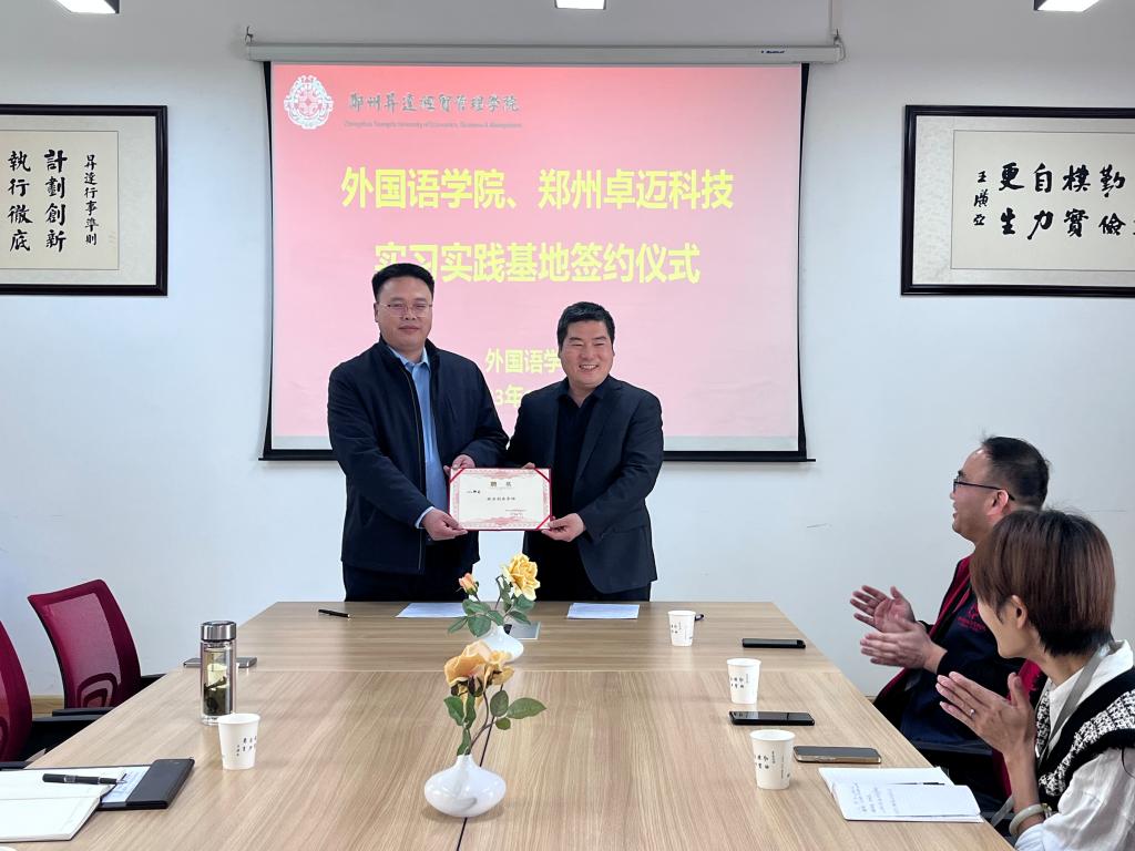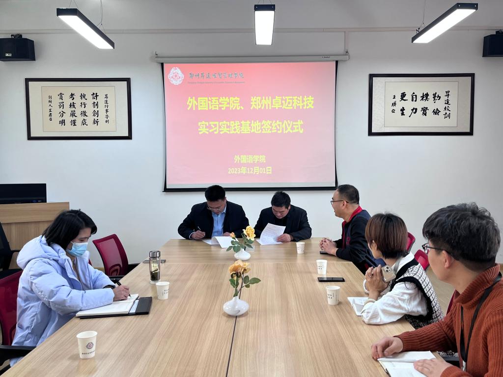 12月1日下午,外国语学院与郑州卓迈科技有限公司在学院会议室举行校企合作签约仪式。外国语学院党委书记石皓召同志与卓迈总经理郑克先生共同出席了签约仪式。