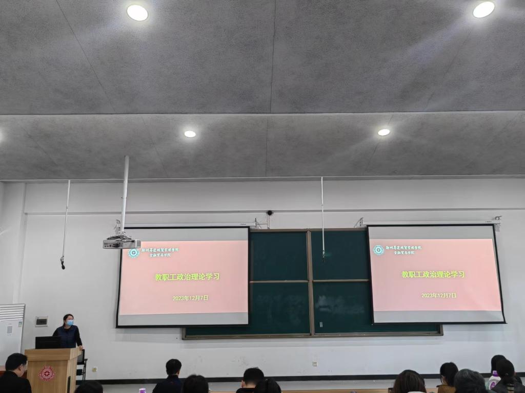 12月7日,金融贸易学院在3号楼107教室组织召开教职工政治理论学习会。会议由金融贸易学院王静老师主持,学院全体教职工参加此次会议。