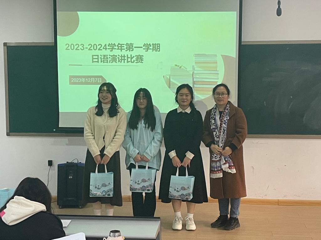 2023年12月7日,外国语学院日语专业在教学一号楼109教室举办2023年日语演讲比赛。日语教研室的张峰老师、张宝红老师、张彬老师、洪艳荣老师、马林娜老师等5名中教,以及外教五十岚拓道老师到场做评委,教研室主任张峰老师主持此次比赛。