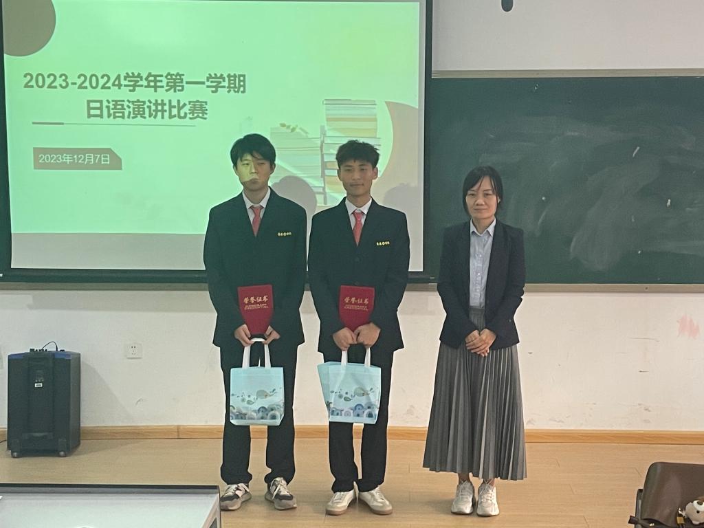 10名参赛选手以他们生动的演讲、精彩的内容,吸引了在场的老师和同学,博得在场师生的阵阵掌声。经过激烈的角逐,22级日语班的崔昊宇和张硕两位同学分别取得第一名和第二名,他们也将代表我校参加明年的河南省日语演讲比赛。