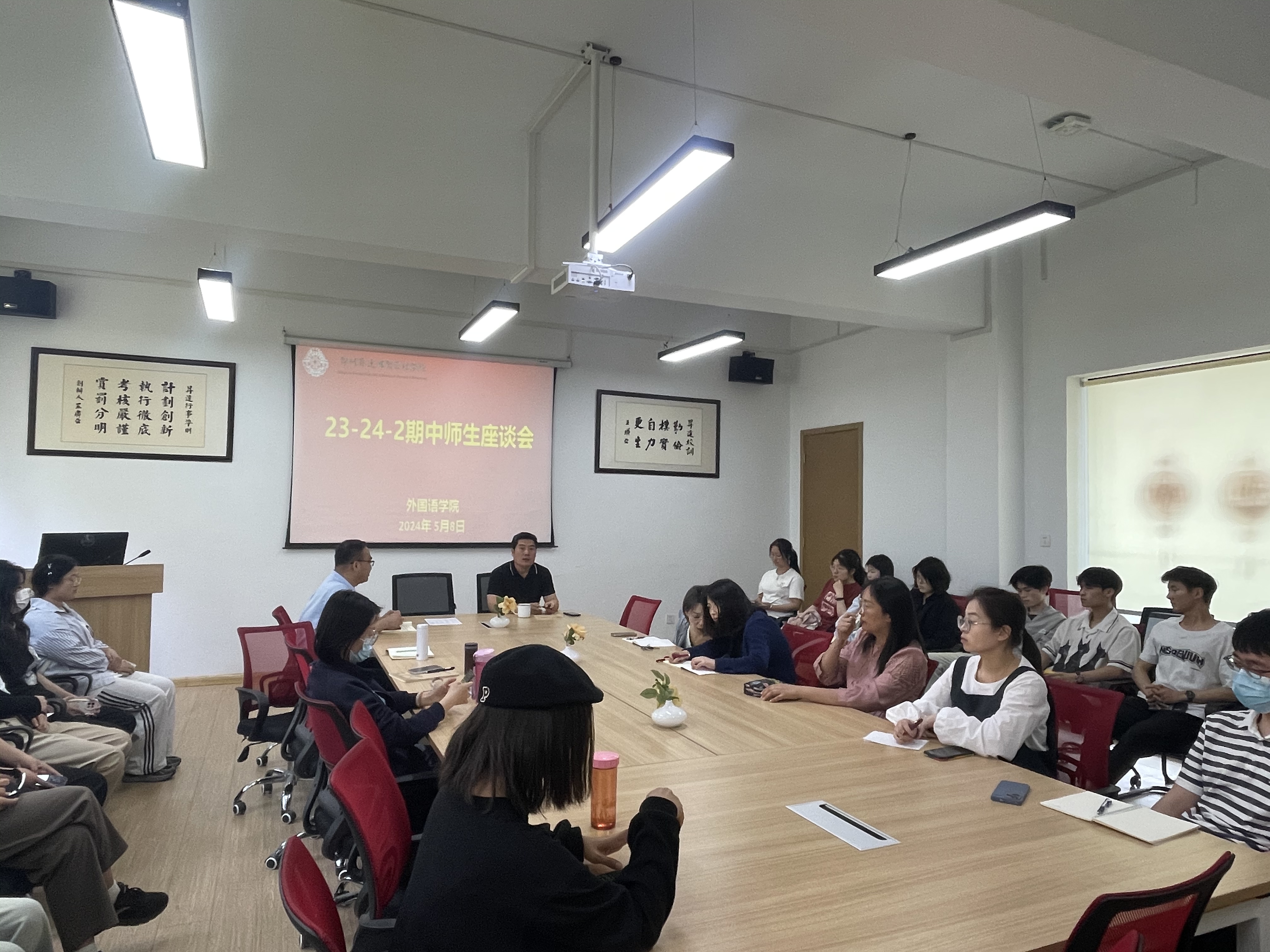 为了加强师生之间的沟通与交流,共同推动外国语学院教学管理工作的发展,2024年5月8日下午,外国语学院在206会议室召开了期中师生代表座谈会。会议由外国语学院教学秘书祁胜利主持,学院党委书记石皓召、教师代表、各班学生代表参会。