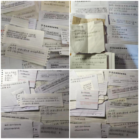 临近期末,恰逢“好学月”活动开展期间,为了架通同学们与任课教师之间深入沟通的桥梁,帮助同学们反馈和解决学习中的疑难和困惑,会计学院各班组织同学们以写“小纸条”的方式,就自身在本学期学习生活中遇到的问题,包括对某门学科学习的疑惑和困难,或者对某门课程讲授的意见和建议,亦或是对某门课程以及任课老师表达喜爱之情。