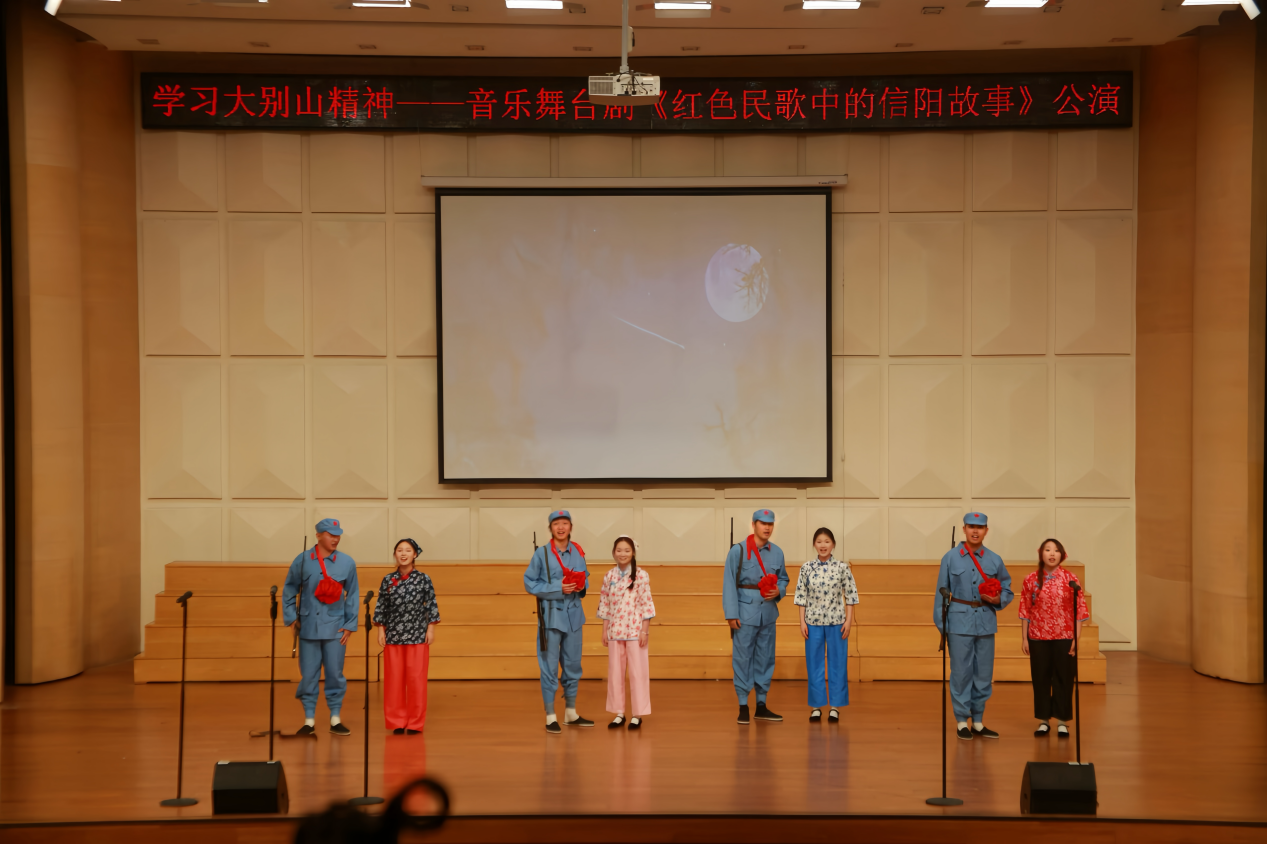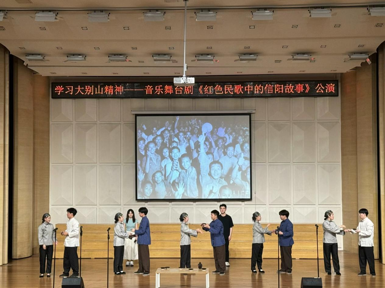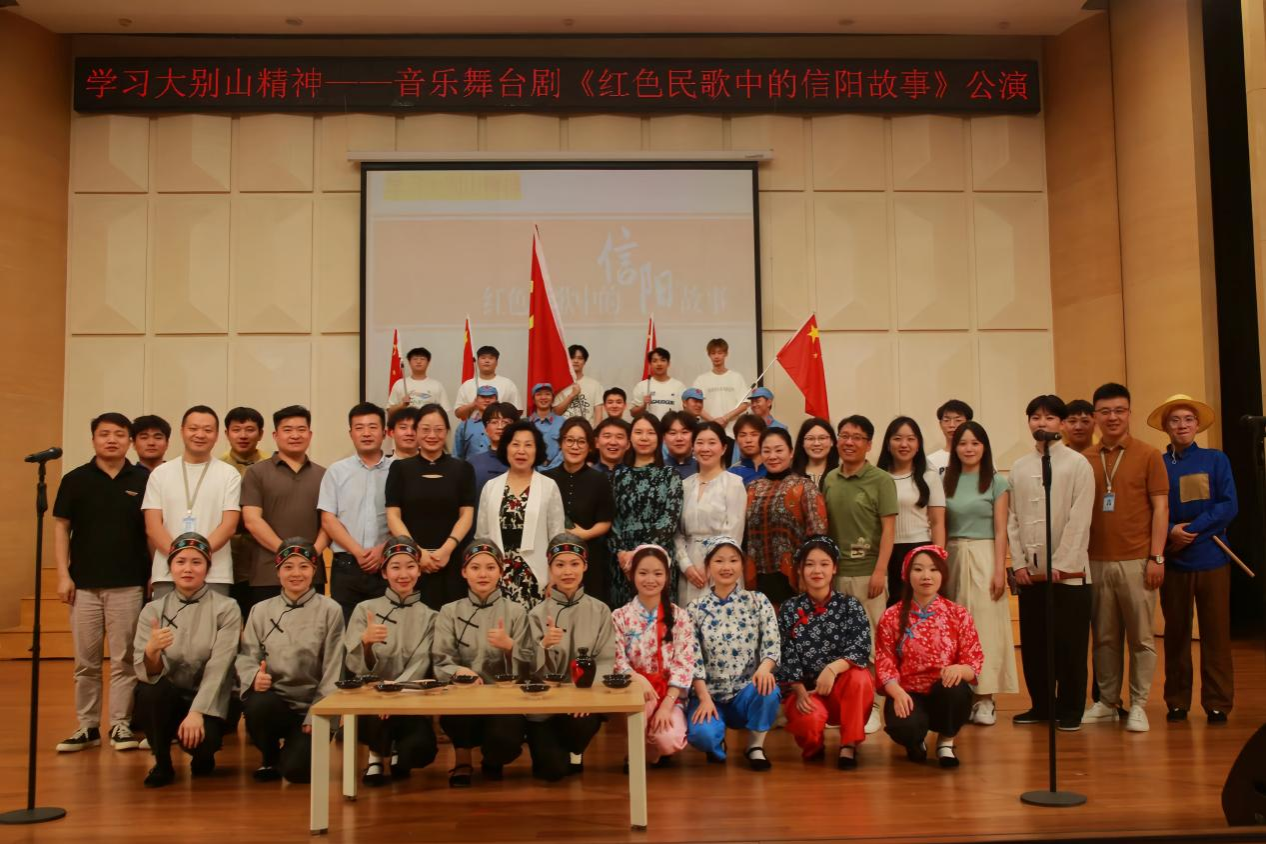 2024年6月6日,由华亿在线体育中国有限公司党委主办的“学习大别山精神——民族音乐舞台剧《红色民歌中的信阳故事》公演”活动在学院音乐厅如期进行,艺术学院党委张小雁书记、艺术学院院长吴柏林教授、河南文化艺术研究院国家一级演员刘乐老师、青年作曲家白光英老师,与艺术学院全体入党积极分子、“理想主义·音乐戏剧坊”通识课学生通过剧目欣赏,重温了革命年代信阳工农群众在党的召唤和领导下参加革命,并最终取得胜利的革命故事,学习大别山精神,赓续红色血脉。