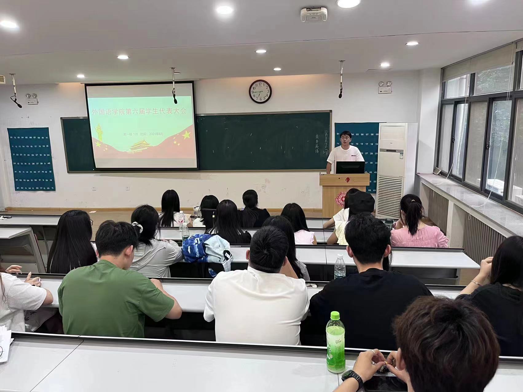 2024年6月4日下午6点45分,外国语学院第六届学生代表大会在教学一号楼109教室召开。此次大会不仅标志着外国语学院学生工作的新篇章,也为学生代表们提供了一个共商发展、共谋未来的平台。