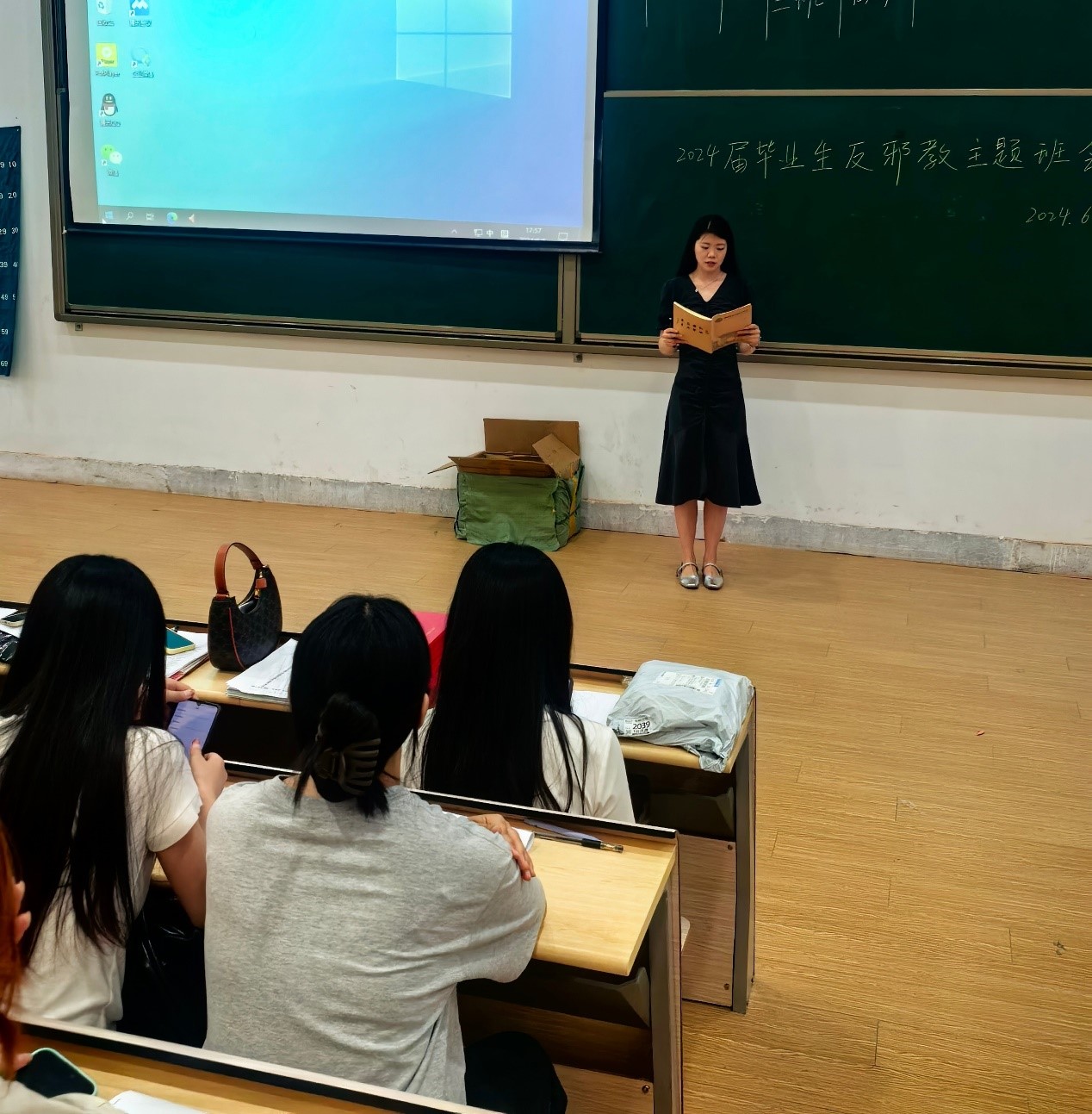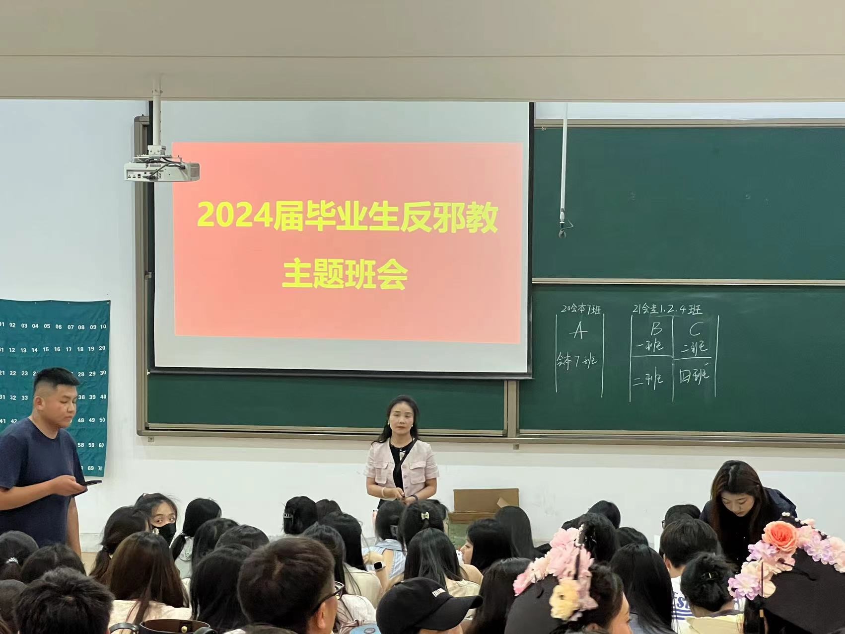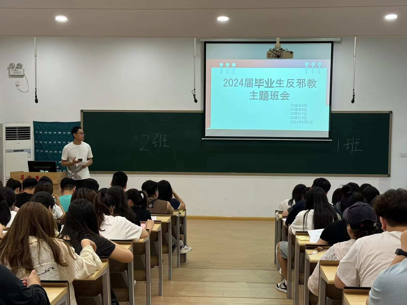 为增强毕业生对邪教组织的鉴别力和防范能力,提高师生们识别邪教、抵御邪教的能力。2024年6月5日-6月7日,会计学院组织毕业班开展反邪教“最后一课”主题班会活动。