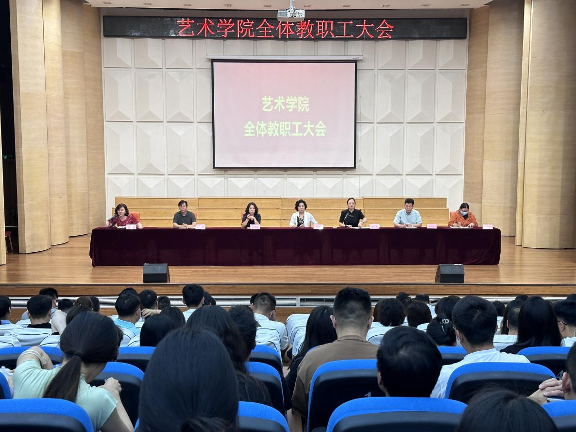 2024年6月6日下午,艺术学院在音乐厅召开全体教职工大会,学院院长吴柏林、院党委书记张小雁、副院长池浩东、副院长夏瑞芳,以及学院全体教职工均参加了会议,会议由教学秘书贠雯主持。